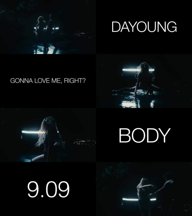 공개된 티저 영상은 짙은 어둠 속에서 자동차 헤드라이트가 다영과 댄서의 유려한 춤을 비추며 실루엣만 드러내는 연출을 담았고, 신비로운 분위기로 다영의 파격 변신을 예고하며 궁금증을 더했다. 특히, 앨범명 'gonna love me, right?'과 곡 제목으로 보이는 'body(바디)', 발매일인 9월 9일이 함께 공개되며 이목을 끌었다.