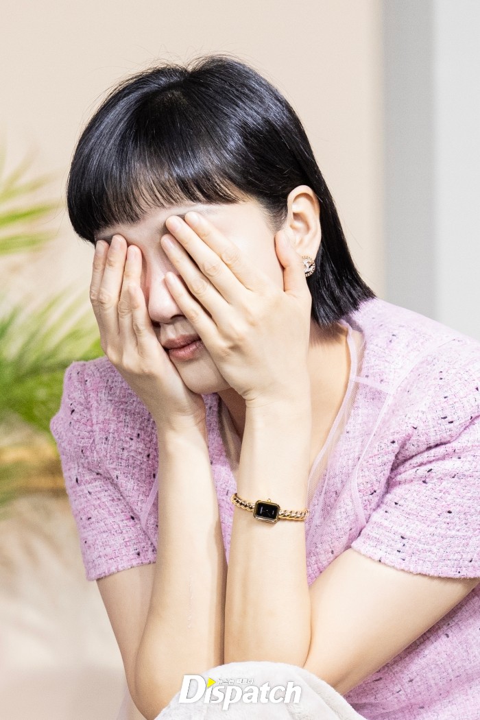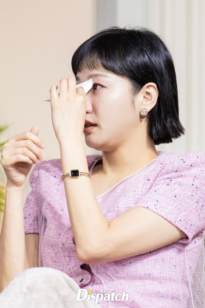 김고은은 핑크 트위드 의상으로 여성미를 뽐냈다. 극 중 이야기에 몰입해 눈물을 보이기도 했다.