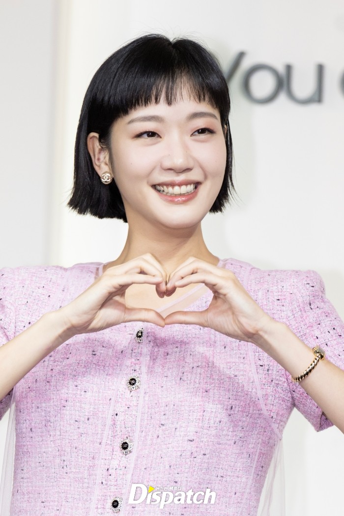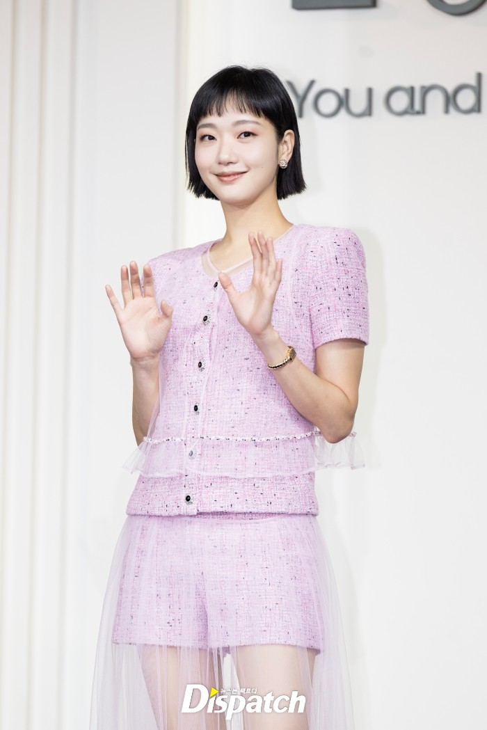 김고은은 핑크 트위드 의상으로 여성미를 뽐냈다. 사랑스러운 미소가 시선을 끌었다.