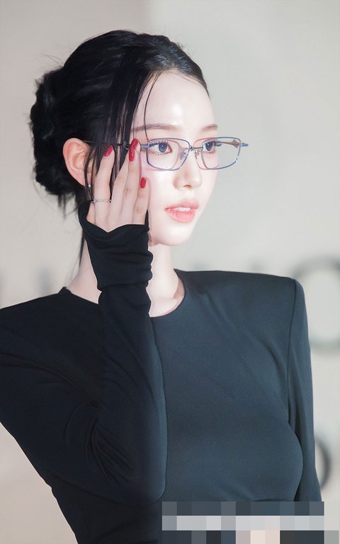안경 올블랙 드레스 착장 올빽머리 빨강네일까지 조화 미쳐서 헛웃음 나와