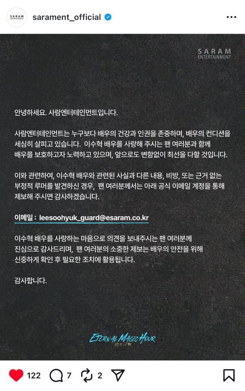 오 진짜 심하게 커뮤에서 억까당하던데 고소공지라니 소속사 일잘하네