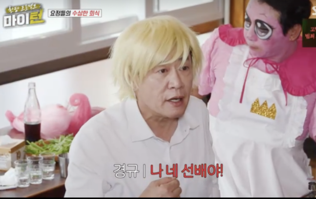 이경규눈 “나 네 선배다 이경규다”고 하자 김원훈은 “제가 진짜 존경하는 선배는 유재석 밖에 없다 ,저 솔직히 선배랑 하고싶지 않았다”며 폭주, 이경규는 가발까지 벗어던지며 발끈했다. 급기야 김원훈은 “옛날 이경규지”라며 쐐기를 박았고 이경규는 “아래 위가 없네”라며 당황, 모두 두 사람에게 “진짜 화내지 마마” 며 말렸다.