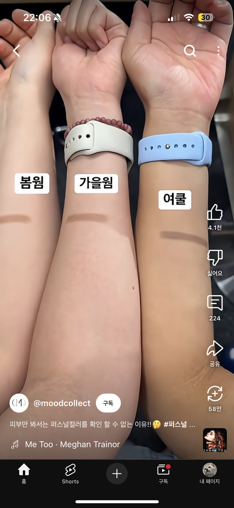 방금 숏츠보다가 한쉐딩으로 퍼스널컬러 확인하는게 보여서