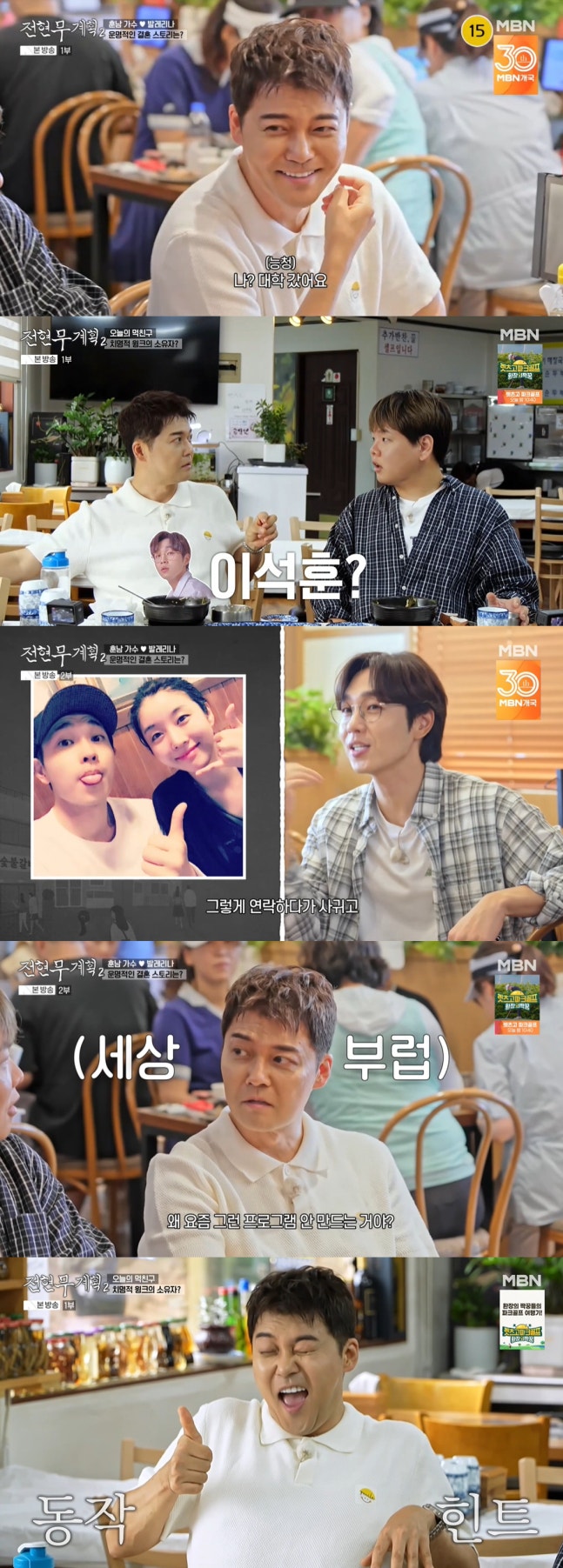 이석훈은 "제가 번호 좀 물어봐달라고 해서 며칠 후에 바로 만나고 연락하다가 사귀게 됐다"라 했다.전현무는 "왜 요즘 그런 프로그램 안 만드는 거냐"라며 울컥했지만 곽준빈은 "형님은 그런 프로그램 있으면 MC만 보시지 않냐"라고 해 웃음을 자아냈다.