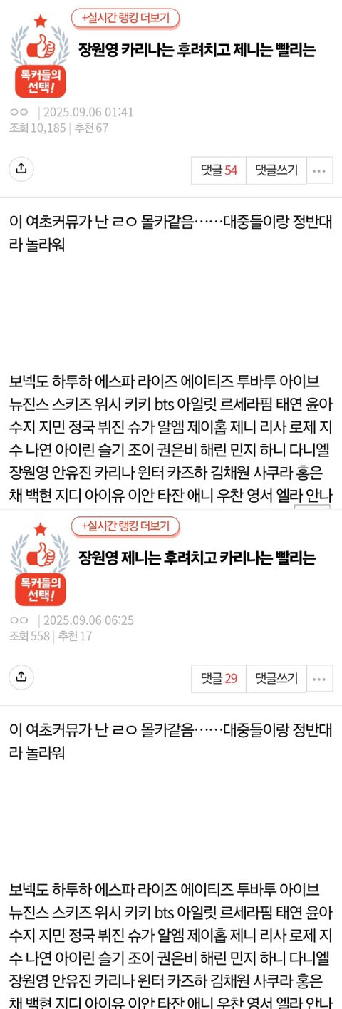 이 여초커뮤가 난 ㄹㅇ 몰카같음……대중들이랑 정반대라 놀라워