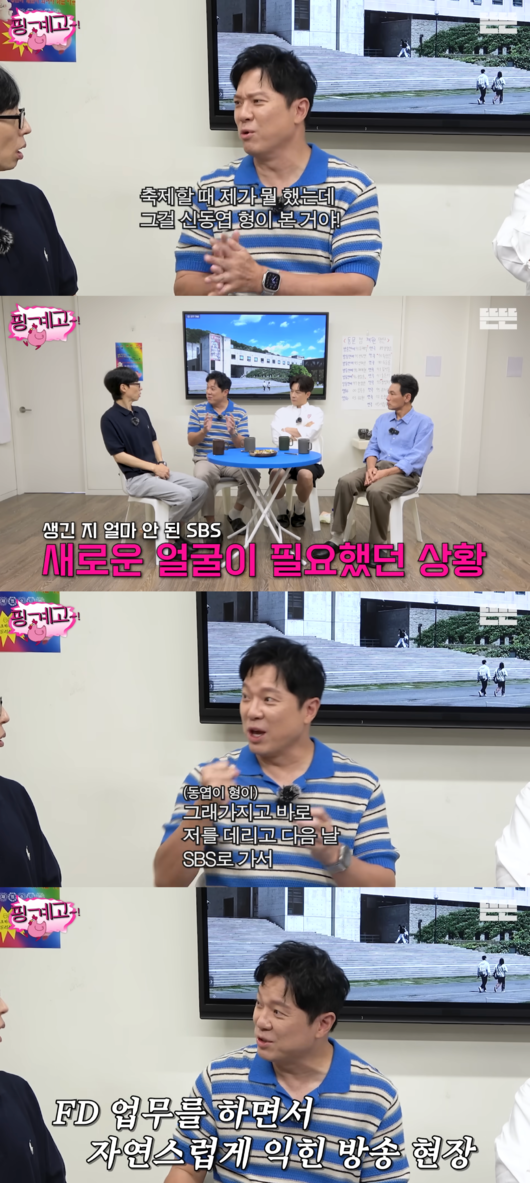 이어 정성화는 “형이 KBS에 계셨을 때다. 그때 오디션 현장입니다라고 리포터로 왔다. 그때 제가 합격한 거다. 활동하는 중에 축제할 때 뭐 했는데, 그걸 신동엽 형이 본 거다”며 “그때 SBS가 생긴지 얼마 안돼서 새로운 피를 수혈해야하니까 저를 데리고 다음날 SBS로 갔다. PD님 옆에서 FD 업무를 하면서 현장을 익혔다. 그러면서 오디션을 준비했다”고 말했다.