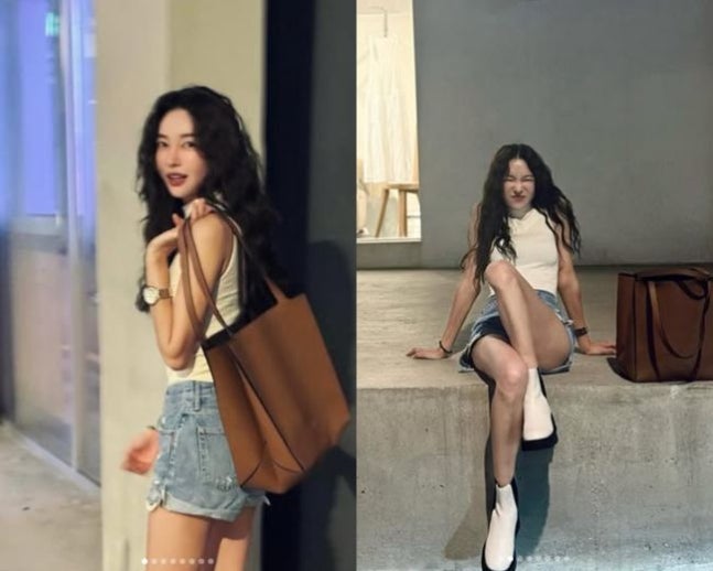 사진 속 김윤지는 짧은 반바지에 민소매를 입고 웨이프펌 헤어스타일로 스타일리시한 여름룩을 선보였다. 길을 걷거나 어딘가에 걸터 앉는 등 여러 포즈를 취한 그는 화보 같은 일상을 전했다.