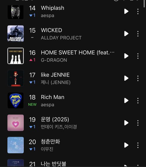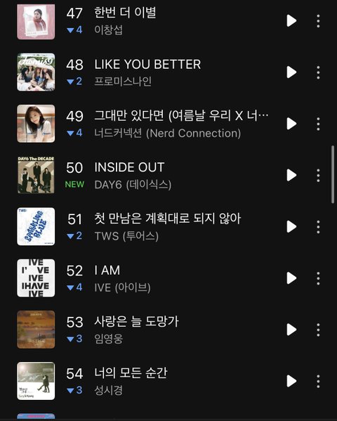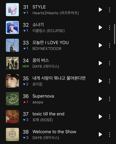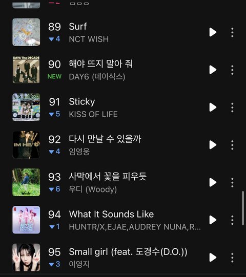 어제 컴백한 에스파 데이식스 멜론 일간 진입 순위
