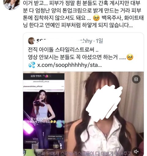 걍 다 손길이 갔기 때문이니 비교해서 정병먹지말자 제발.. 얼굴로 돈 버는 사람은 그만큼 관리비 들고,그만큼 도움 받고 카메라+사람들 앞에 서는거임.얼굴로 돈 벌거 아니면 ㄹㅇ굳이?다