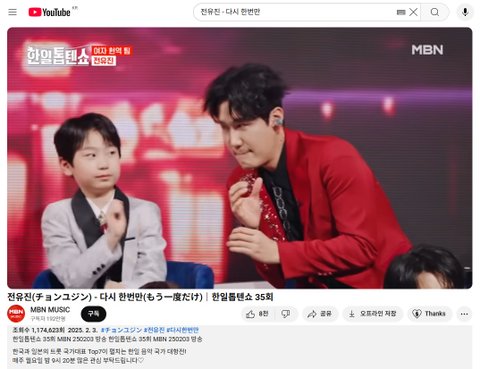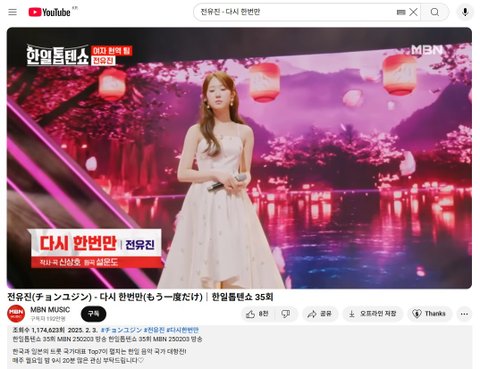(사진1·2 설명) 전유진(チョンユジン) - 다시 한번만(もう一度だけ)|한일톱텐쇼 35회
