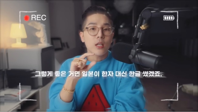 이어 그는 “한글은 우리의 언어가 아니다. 한글을 우리의 언어라고 표현하게 되면 우리나라 사람은 세종 이전에는 글자도 없던 미개 민족이 돼버린다. 멍청하게 살고 싶으면 한글만 이용하면 된다.”라고 덧붙였고 해당 영상은 일본 야후 재팬의 우익 누리꾼들에게 호응을 받는 등 많은 논란이 됐다.