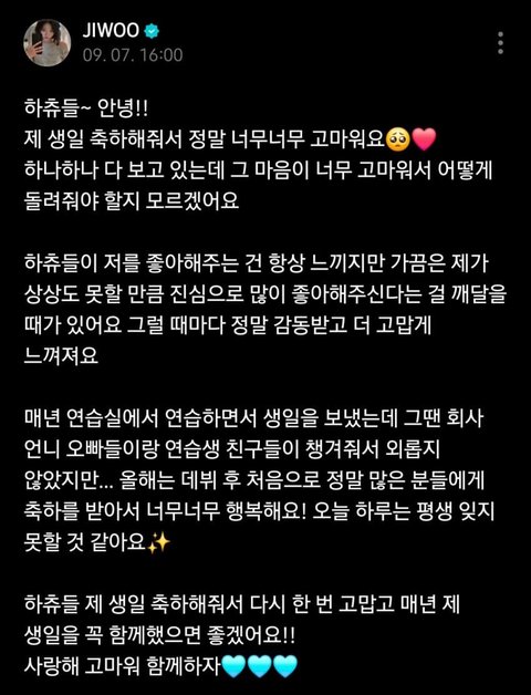 오늘자 위버스 하츠투하츠 리더 지우 생일