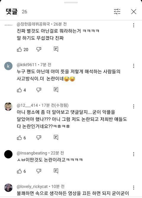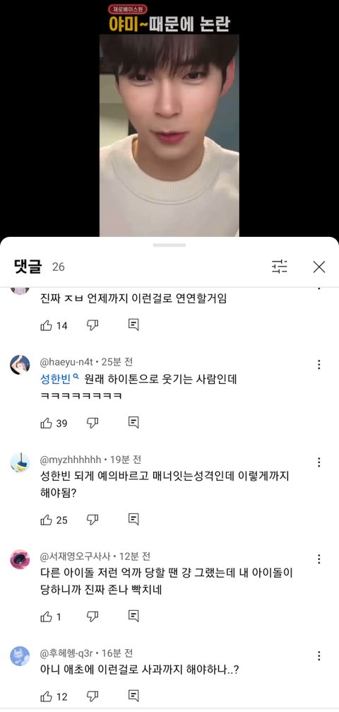 성한빈 ㅅㅇ소리 논란에 유튜브 댓글반응
