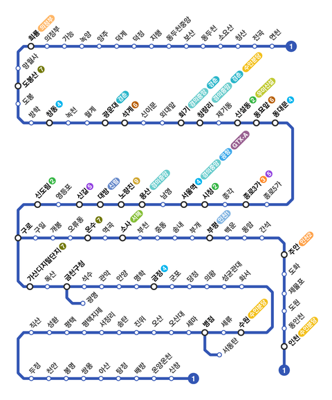 서울 지하철 1호선은 소요산역에서 출발해 인천·신창역까지 이어지는 광역철도 노선으로, 수도권의 북부와 남부, 서울 도심을 종횡으로 연결합니다. 1호선은 서울뿐 아니라 경기도 일부 지역과 인천까지 이어져, 출퇴근과 통학, 일상 이동뿐 아니라 광역 이동에도 중요한 역할을 합니다. 주요 환승역을 통해 다른 지하철 노선과 광역철도, KTX/ITX와도 연결되어 서울 전역과 수도권으로 빠르고 편리하게 이동할 수 있습니다.