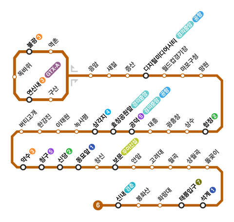 서울 지하철 6호선은 응암역에서 출발해 봉화산역까지 연결되는 노선으로, 서울 서부와 동부를 남북으로 연결하며 주요 상업·주거·교육 지역과 문화 시설을 통과합니다. 6호선은 시민들의 출퇴근과 통학, 일상 이동뿐 아니라 관광객들의 이동에도 활용되며, 1호선, 2호선, 3호선, 5호선 등과 주요 환승역에서 연결되어 서울 전역과 수도권으로 광역 이동이 가능합니다. 특히 상업지구, 대학가, 공원 등 다양한 생활권을 연결하여 이용 수요가 높은 편입니다.