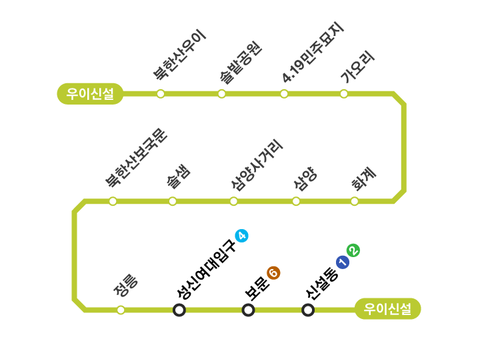 노선 구간: 북한산우이 ↔ 신설동