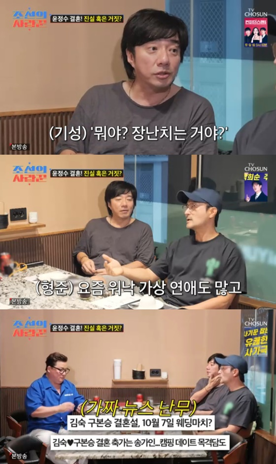 임형준/사진=TV조선임형준이 김숙, 구본승의 결혼설에 대한 생각을 밝혔다.8일 방송된 TV조선 예능 프로그램 '조선의 사랑꾼'에서는 11월 결혼을 앞둔 개그맨 윤정수와 만난 20년지기 친구 배우 임형준, 가수 배기성의 모습이 담겼다.