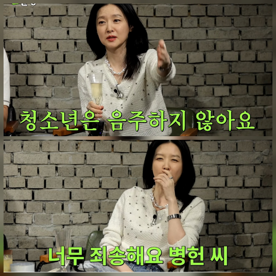 이에 신동엽은 “술을 마시는 걸 조장하면 안 된다. 하지만 무슨 뜻인지 충분히 안다”며 “이번에는 자막을 길게 달아보겠다”고 화답해 웃음을 자아냈다. 실제 방송에는 ‘청소년 음주 금지’ 자막이 평소보다 길게 노출됐다.또 이영애는 모델 시절을 회상하며 “하이틴 잡지 ‘여학생’을 시작으로 유덕화와 함께 초콜릿 CF를 찍었다. 당시 같은 학교 체육과에 다니던 박선영도 현장에 있었다”고 말했다. 이어 “그때 한양대 동기였던 이병헌 씨도 있었는데, 미안하지만 옆에 있던 다른 친구가 더 잘생겨 보였다”고 말해 폭소를 터뜨렸다. 그는 “지금 생각하면 이병헌 씨에게 미안하다”고 덧붙이며 즉석에서 사과를 전했다.