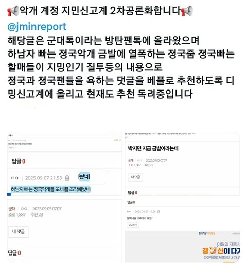 지민 소문 날 때마다 지민팬 또 다른 멤버들 루머 퍼트림