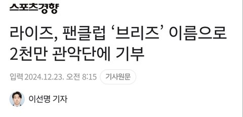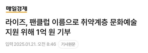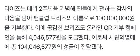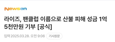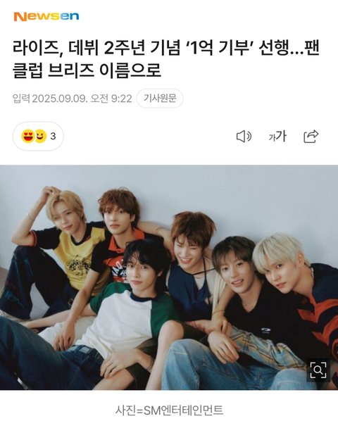 같은 세대 중에서 계속 기부 기사 나오는 건 라이즈가 제일 많은 것 같은데 정산금 몇번이고 더 받았을 전 세대랑 같은 선상에 두냐.. 잘한건 칭찬좀 해주자