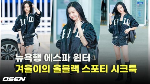 뉴욕행 에스파 윈터, 겨울이의 올블랙 스포티 시크룩 [O! STAR]