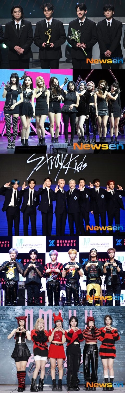 사진=위부터 데이식스, 트와이스, 스트레이 키즈, 엑스디너리 히어로즈, 엔믹스/뉴스엔DB