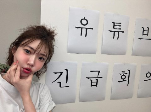공개된 사진 속 고준희는 '유튜브 긴급회의'라고 적힌 벽에 기대어 카메라를 응시하고 있다.