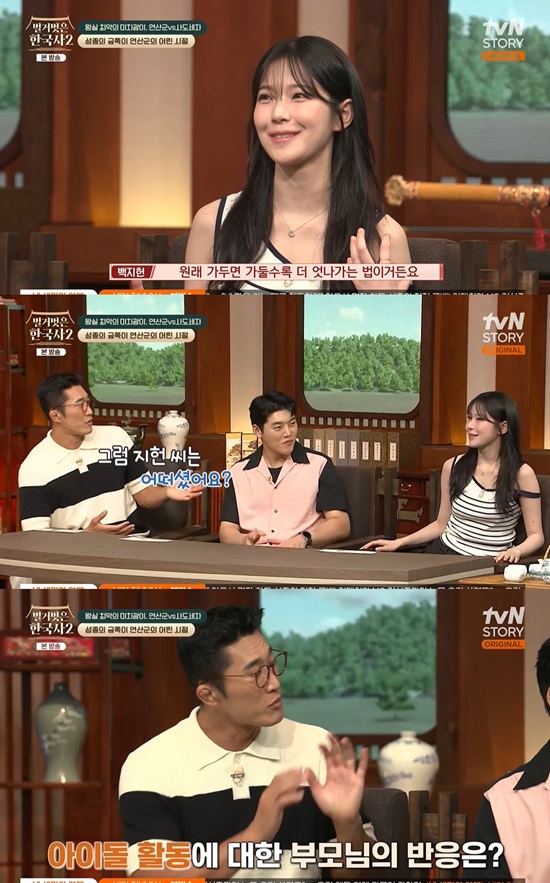 백지헌의 대답을 들은 출연진들은 "그럼 지현 씨는 어떠셨냐. 공부를 잘하셨을 것 같은데, 부모님의 반대가 있었냐"고 물었고, 백지헌은 "아이돌 활동에 반대가 있었다. 저는 그래서 부모님께 성적을 올리겠다고 딜을 걸었다"고 대답해 궁금증을 자아냈다.