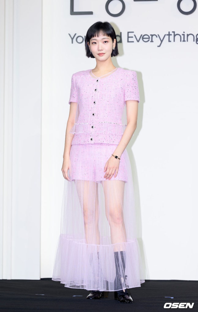 김고은은 핑크 트위드 투피스를 선택해 시선을 사로잡았다. 쇼츠 디자인에 시스루 롱스커트를 레이어드하며 유니크한 페미닌룩을 완성했고, 클래식한 트위드와 트렌디한 시스루의 조합으로 영 앤 시크(Young & Chic) 무드를 선보였다. 다양한 소재와 스타일을 믹스한 이색적인 패션이 돋보였다.