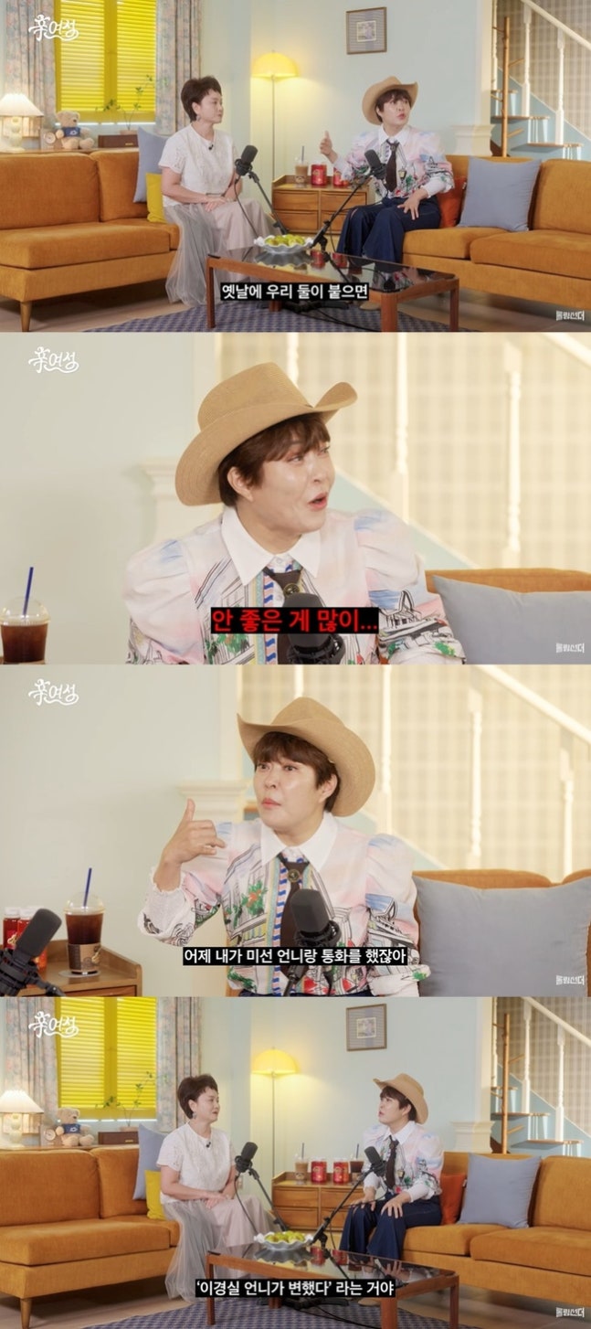 이에 이경실은 "옛날에는 콘셉트를 독하게 잡았던 거다. 힘들었다"고 해명, 조혜련은 "좀 독하기도 했다"고 받아쳐 웃음을 자아냈다. 그러면서 "경실 언니가 한번 동태처럼 누워서 웃는 장면이 있었는데 미선 언니가 너무 웃겼다더라. 우리가 미선 언니한테 에너지 많이 줘야 하는데 얼마나 잘한 일이냐"고 기뻐했다.