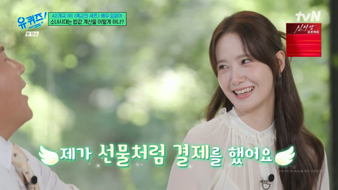 이때 조세호가 "그렇게 여럿이 모이면 계산은 누가 하냐"고 묻자 윤아는 "그때마다 다르긴 하다. 그날은 제가 촬영 때문에 언니 선물을 미처 준비하지 못했다. 그래서 선물처럼 결제했다. 보통은 주최자가 계산할 때가 많다"며 답해 웃음을 자아냈다.