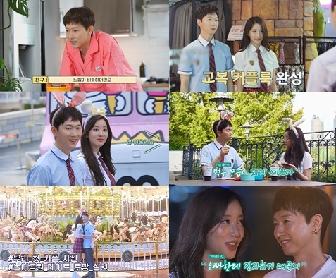 급기야 그는 “우리 손 잡을까?”라며 오채이에게 손을 내밀어 손잡기에 성공했고, 회전목마 앞에서 기념사진을 찍다가 깜짝 포옹까지 해 달달한 투샷을 남겼다.