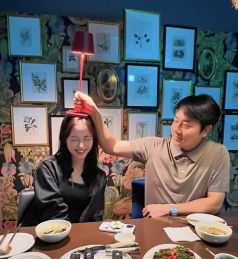 공개된 사진에는 분위기 있는 레스토랑에서 미니 조명 아래 앉은 이은주와, 장난스레 그녀의 머리 위에 등을 올리는 앤디의 다정한 모습이 포착됐다.
