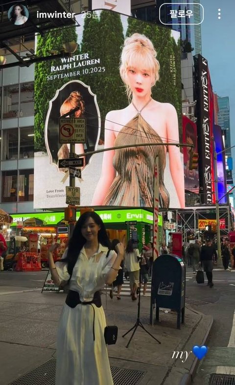 윈터 착장 느좋 그리고 팬분이 오직 윈터를 윈터 랄프 로렌 광고판 만들어주시는거 너무 마음이 따뜻하고 든든하다 윈터가 광고판 인증 하는 거 팬분이 얼마나 뿌듯할까?