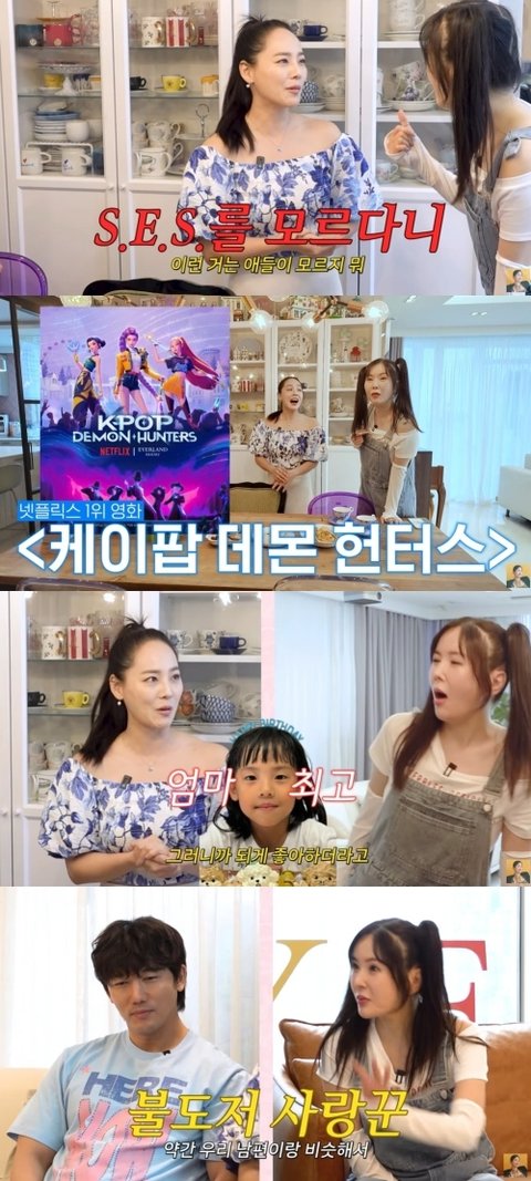 다만 S.E.S가 최근 전세계적으로 크게 흥행한 넷플릭스 ‘케이팝 데몬 헌터스’의 모티브가 된 사실은 알고 있다고 했다. 유진은 “어느날 아침 주말에 둘째가 그걸 보고 있더라”며 “3인조 걸그룹 보여줄 때 S.E.S 같은 이미지가 잠깐 나오고 그게 우리를 모티브로 했다는 이야기가 있어서 내가 그 얘기를 둘째에게 해줬다. 되게 좋아하더라”고 흐뭇해했다.