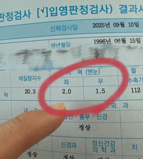 근데 2.0이 가능한 시력이었어? 거의 몽골인 수준 아니냐며 ㅋㅋㅋㅋ