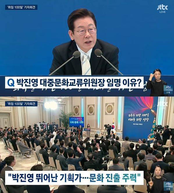 이어 "대한민국의 문화 역량을 산업으로 발전시켜서 우리 국민들이 먹고 살 길을 만드는 것도 중요한데 박진영이라는 사람이 그 측면에서 뛰어난 기획가다. 다행히 맡아주시겠다고 했다. 주로 문화의 산업화, 문화의 글로벌 진출에 주력하게 될 거다. 국내문화예술 창달 지원은 또 다른 영역에서 맡게 될 것"이라며 박진영이 문화 진출 주력에 힘을 쓸 예정이라고 전했다.