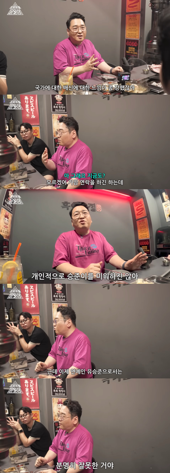그러면서도 "연예인 유승준으로서는 잘못한 것"이라고 안타까움을 표했다.