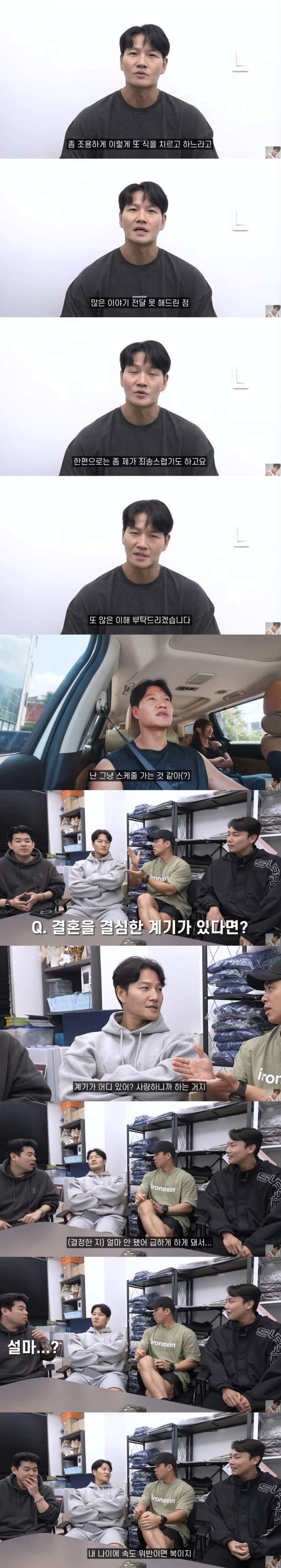(엑스포츠뉴스 이예진 기자) 가수 김종국이 결혼, 아내와 관련해 입을 열고 있다. 나이, 직업, 속도위반 등에 대해 직접 이야기를 전하고 있어 눈길을 끌었다.