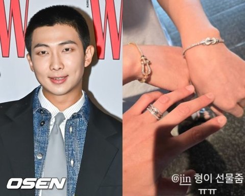 공개된 사진에는 RM이 프랑스의 하이 쥬얼리 브랜드의 팔찌와 반지를 착용한 듯한 모습이 담겼다. 해당 브랜드는 진이 글로벌 앰배서더로 있는 곳이다.