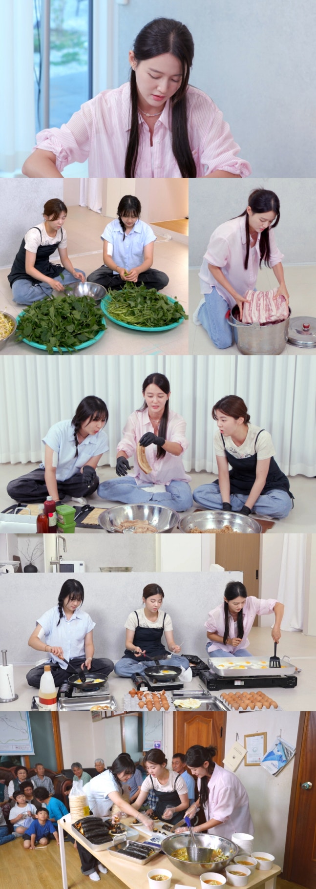 장보기를 마친 남보라와 두 동생은 숙소에서 김밥 만들기에 돌입했다. 알고 보니 김천 김밥축제에서 선보일 김밥을 만들어 마을분들에게 사전 평가를 받아 보기로 한 것. 엄청난 양의 가마솥 밥에, 엄청난 양의 김밥 재료들이 등장했고, 양념 계량 스푼은 국자였다. 남보라는 대용량 달인답게 중간중간 대용량 요리를 쉽고 빠르게 할 수 있는 꿀팁을 공개해 눈길을 끌었다.특히 동생들이 계란프라이를 2~3개씩 할 때 남보라는 혼자서 철판에 10개씩 계란프라이를 만들어내 놀라움을 자아냈다. 남보라가 애착 철판을 김천까지 가져온 것. 또한 남보라는 발도 없이 눈 깜짝할 새에 김밥을 휘리릭 말았다. 동생들 역시 빠르게 손을 움직였다. 흡사 김밥 공장과도 같은 모습. 세 자매는 기다리는 어르신들을 생각, "스피드가 생명이야"를 외치며 김밥을 말고 또 말았다.