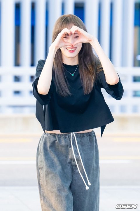 이성경이 출국길에 포즈를 취하고 있다. 2025.09.09 / rumi@osen.co.kr