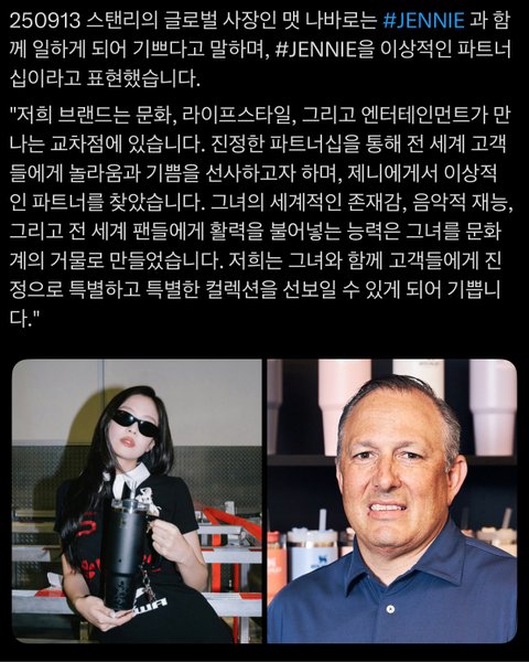 스탠리 콜라보 뉴짤 떴는데 훈녀력 ㄹㅈㄷ 어제 뜬 짤이랑은 분위기 정반대라 더 느좋