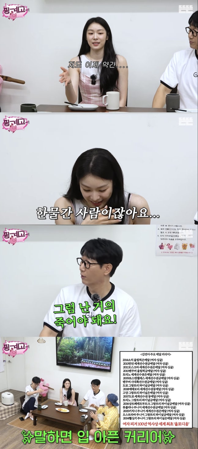 조세호는 “김연아가 박씨를 몰고 왔다”며 반가움을 드러낸 뒤 “확실히 슈퍼스타이신 게, 보통 단발 계약으로 끝나는데 (광고 계약) 연장하시지 않았냐”고 감탄했다.