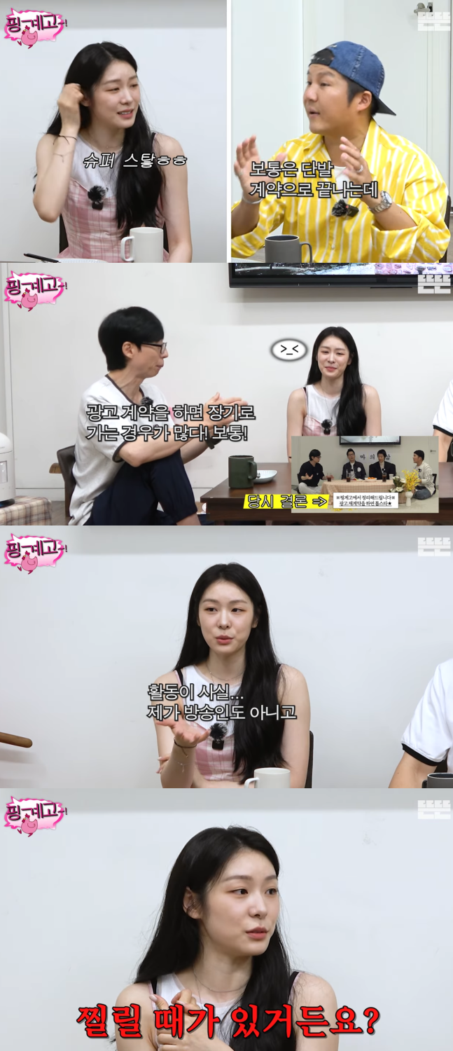 유튜브 채널 ‘뜬뜬’ 캡처 김연아는 “제가 사실 활동하는 게 방송인도 아니고 애매하지 않냐. 그런데 감사하게도 이렇게 장기로 하는 것들이 있다”고 설명했다. 이어 “근데 찔릴 때가 있다. (제품이) 미디어에 노출될 일이 없으니까. 그래서 ‘핑계고’에 나와서 한 번 또 이렇게 드러내는 게 좋겠다 싶었다”며 솔직한 속내를 털어놨다.