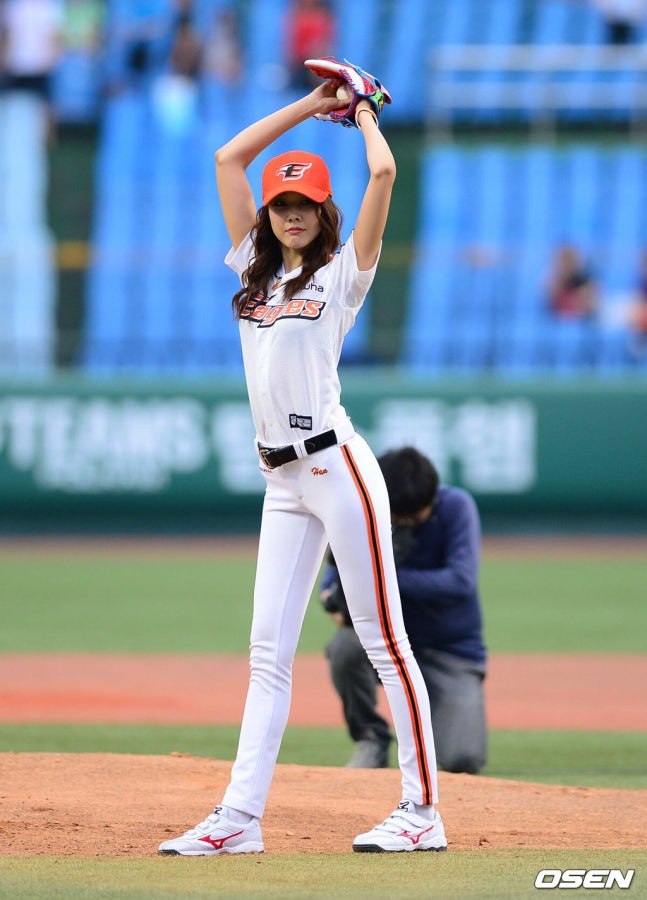 2012년에는 마운드가 아닌 마운드 앞에서 진행된 시구였으나 긴다리를 자랑한 와인드업 포즈로 남다른 몸매를 드러내 큰 화제를 모았다.