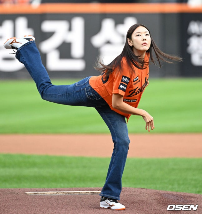 [OSEN=대전, 이대선 기자]경기에 앞서 모델 한혜진이 시구를 하고 있다. 2025.09.13 /sunday@osen.co.kr한혜진은 시구 전 마이크를 잡고 “오늘 제가 여기서 시구를 하게 돼서 너무 영광스럽게 생각하고, 모든 선수분들 부상 없도록 열심히 제가 응원하도록 하겠다”고 말했다.