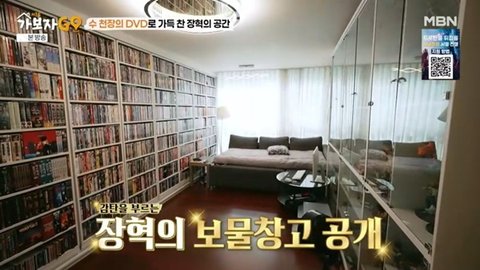 또 장혁의 방은 다양한 DVD로 채워져 있었고, 안정환이 “DVD방 아니냐. 네가 역시 배우”라고 감탄했다. 홍현희도 “장르가 다양한 게 대단한 것 같다. 어마어마하다. 쭉 모으신 것 아니냐”고 감탄했다. (사진=MBN ‘가보자GO(가보자고) 시즌5’)