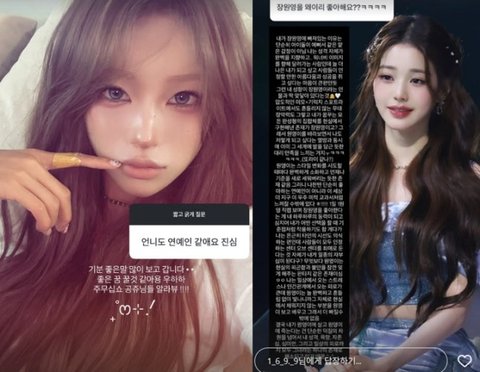 최준희는 자신이 장원영을 좋아하는 이유에 대해 "단순히 아이돌이 예뻐서 같은 얕은 감정이 아님. 성격 자체가 완벽을 지향하고 워너비 이미지를 향해 달려가는 사람인데 늘 더 나은 내가 되고 싶고 사람들이 인정할 만한 아름다움과 성공을 쥐고 싶다는 마음이 근원인 듯"이라며 "그런 내 성향이 장원영이라는 인물과 맞닿아 있다는 것. 압도적인 미모+기럭지 스포트라이트에서도 흔들리지 않는 무대 장악력도 그렇고 내가 꿈꾸는 모든 완성형의 집합체를 현실에서 구현해낸 존재가 장원영"이라고 전했다.