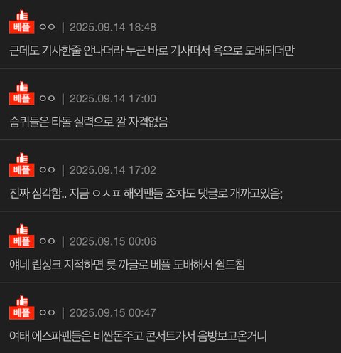 니들이 아직까지 라이브논란이 없던거는 맨날 립싱크만 해서 그럼 거기에 에스엠 역바에 슴퀴들 피의 쉴드까지